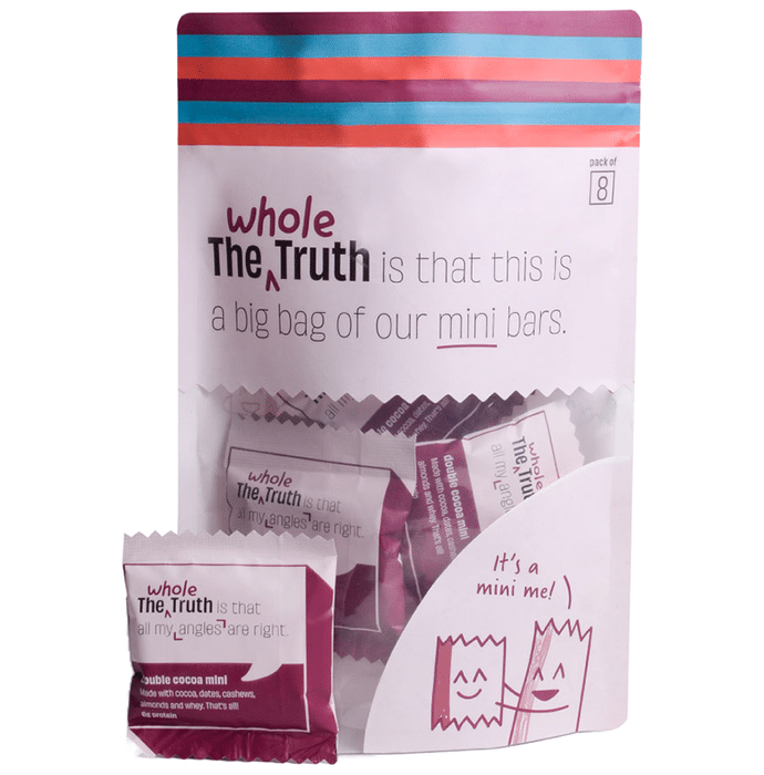 The Whole Truth Mini Protein Bar (27gm Each) Double Cocoa The Whole Truth Mini Protein Bars are high in fibre and low in calories thus, aid health and weight management. These vegan protein bars are the ideal munching option at any time of the day.