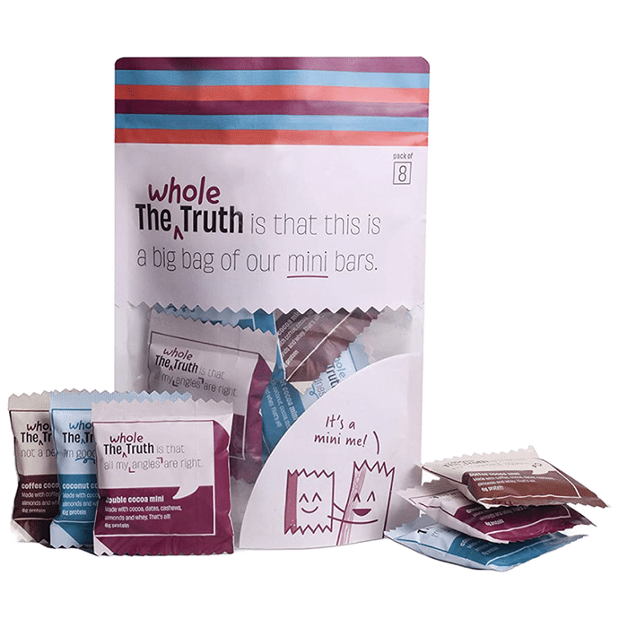 The Whole Truth Mini Protein Bar (27gm Each) The Chocolate Party The Whole Truth Mini Protein Bars are high in fibre and low in calories thus, aid health and weight management. These vegan protein bars are the ideal munching option at any time of the day.