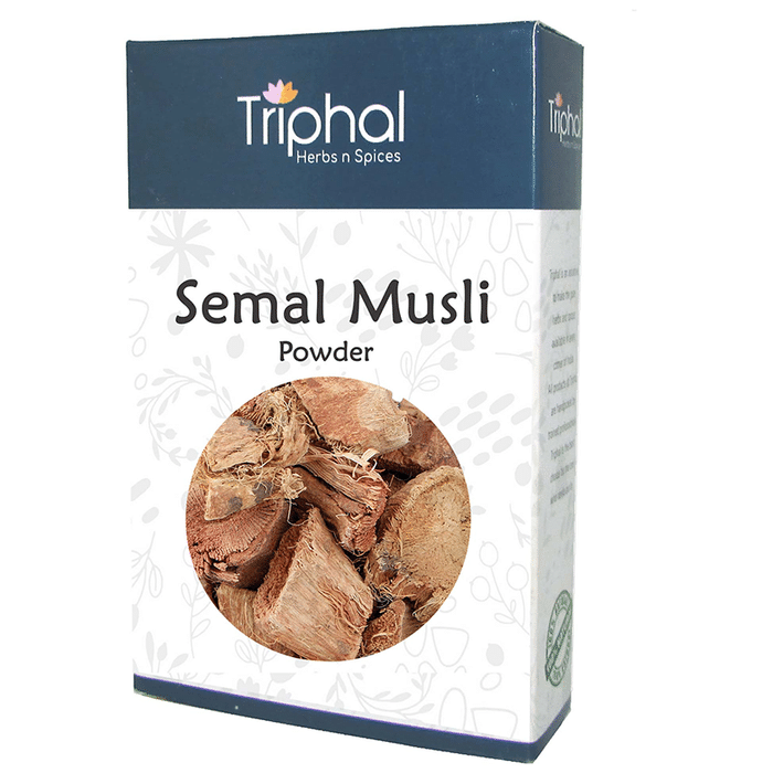 Triphal Semal Musli/ Musli Simbal/ Musli Lal/ Bombax Malabaricum DC/ Silk Cotton Root Powder Triphal Semal Musli It is used for aiding dysentery, diarrhea, and menorrhagia and effectively helps in aiding wounds. The bark of semal musli can be used to stop bleeding, gum can be used to reduce the burning sensation, and seeds may be useful in managing chronic cystitis and gonorrhoea.