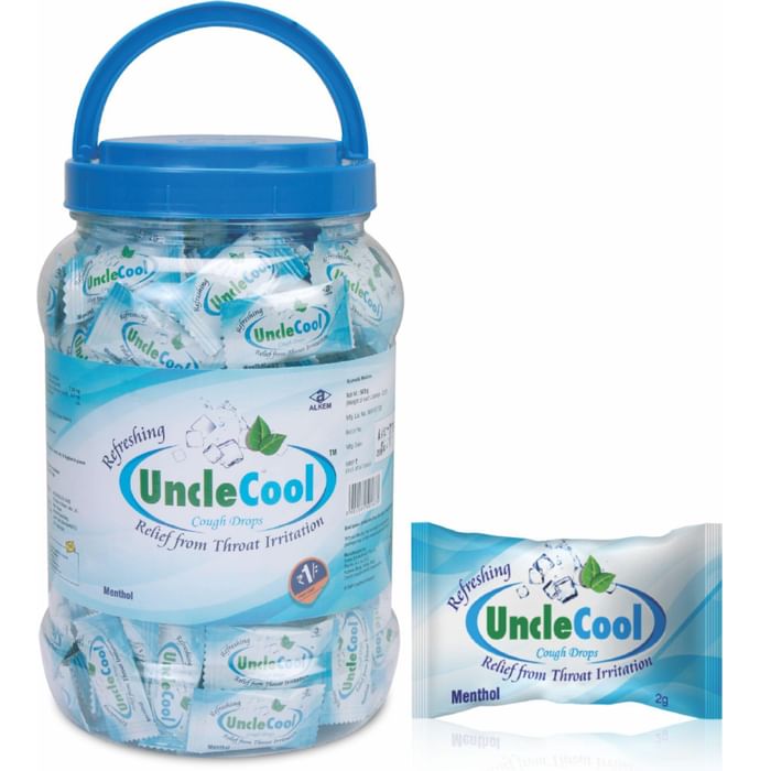 Uncle Cool Cough Drops Uncle Cool Cough Drops gives relief from throat irritation. Made with pudina satva and nilgiri tel, the cough drops provide relief from throat irritation due to the cooling and healing properties of mint and eucalyptus oil.