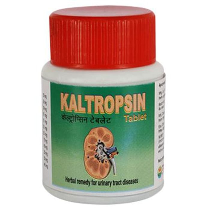 United Kaltropsin Tablet contains Gokshura (Tribulus terrestris), Pashanbheda (Bergenia ligulata), Apamarg (Achyranthus aspera), Varuna (Crataeva nurvala), Punarnava (Boerrhavia diffusa), Yastimadhu (Glycyrrhiza glabra), Hajral Yahuda Bhasma and Kshar Parpati as a combination of ingredients. Key benefits/uses of United Kaltropsin Tablet: - Comprehensive polyherbal diuretic preparation recommended for safe and effective management of various urinary disorders - Antimicrobial, nephroprotective & alkaliser actions - High concentration of lithotryptic agents help treat renal calculi - Corrects impaired crystalloid colloid imbalance Direction for use/Dosage: - One to two tablets of United Kaltropsin twice a day with water or as directed by the physician Indications: - Renal calculi, recurrent calculi, burning micturition, non-specific urinary tract infections Storage instructions: - Store the formulation in cool and dry place Safety information: - Read the label carefully before use - Do not exceed the recommended dose - Keep out of the reach and sight of children