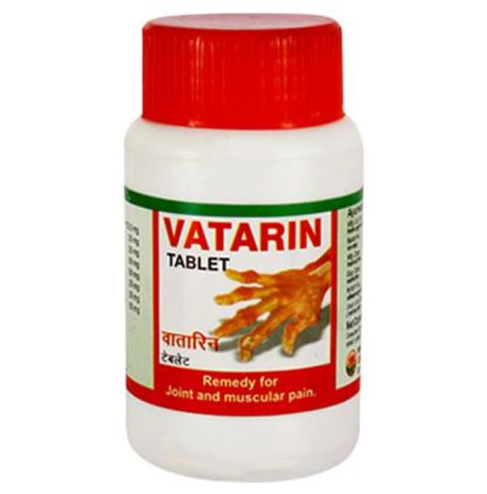 Vatarin Tablet contains Shuddha Guggulu (Balsamodendron mukul), Ashwagandha (Withania somnifera), Shuddha Shilajeet, Sunthi (Zingiber officinale) and Maha Rasnadi Kwatha Ghansar as a combination of ingredients. Key benefits/uses of United Vatarin Tablet: - Provides lasting relief from chronic painful inflammatory disorders - Reduces tenderness of joints, relieves pain, swelling & stiffness - Arrests progressive deterioration - Safe for prolonged use Direction for use/Dosage: - One to two tablets of United Vatarin Tablet twice a day or as directed by the physician Indications: - Rheumatoid, osteoarthritis, spondylosis, joint stiffness and inflammation Storage instructions: - Store the formulation in cool and dry place Safety information: - Read the label carefully before use - Do not exceed the recommended dose - Keep out of the reach and sight of children