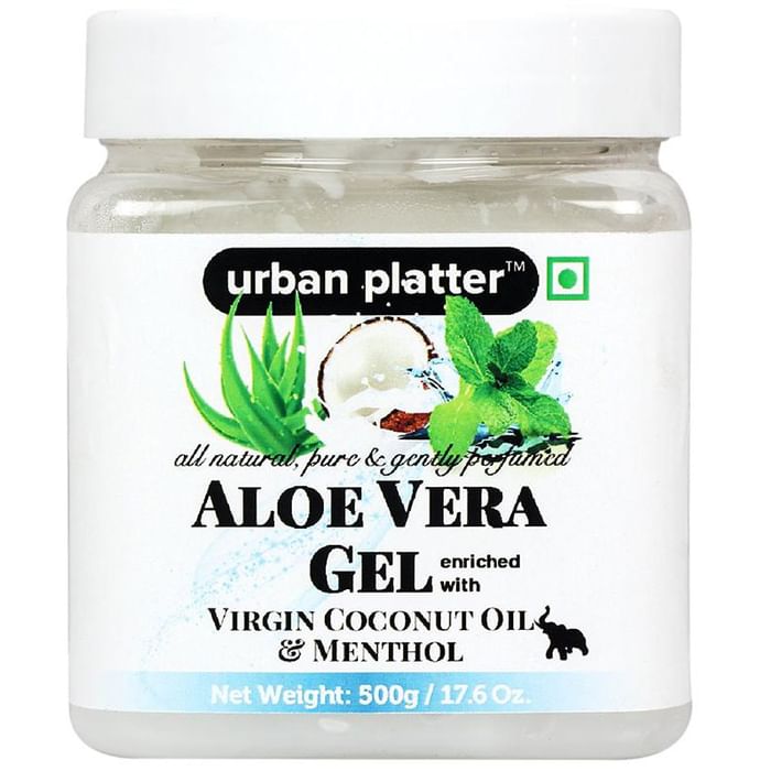 Urban Platter Aloe Vera Gel Enriched with Virgin Coconut Oil and Menthol Urban Platter Aloe Vera Gel offers a moisturizing gel ideal for softening the skin, protecting it from sun damage and acting as an immunizing agent against skin ailments like dry skin, acne itchy skin conditions. This gel is an ideal solution for gifting a soft, glowing and pampered skin.