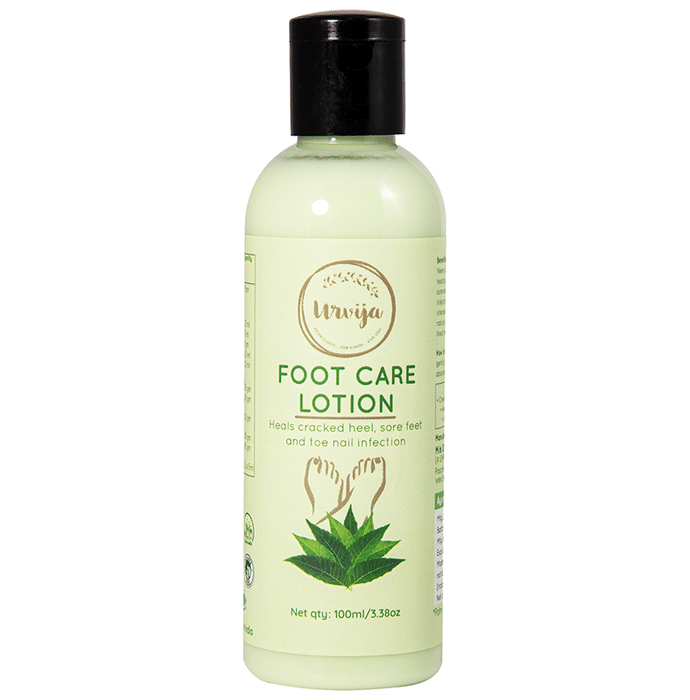 Urvija Foot Care Lotion Urvija Foot Care Lotion helps heal cracks, damages, uneven nails and even foot infection. It is infused with the goodness of coconut oil, castor oil, eucalyptus oil and other potent ingredients. The product is palm oil-free, vegan and cruelty-free.