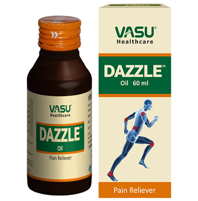Vasu Dazzle Oil is a combination of traditionally used aromatic oils with known muscular pain relieving effect. Key benefits of Vasu Dazzle Oil: The onset of action is prompt, providing quick relief from the different type of pains like Muscular pain, stiff joints, backache etc. Direction for use: Massage gently on the affected area, 2-3 times a day or as directed by the physician. Indication: Pain associated with RA/OA, Backache, Muscle stiffness, Musculoskeletal pain. Safety information: Keep out of the reach and sight of the children. Use under medical supervision.