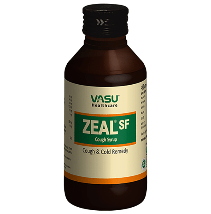 Vasu Zeal Sf Cough Syrup Key benefits of Vasu Zeal Sf Cough Syrup: Breakdown the cough and sputum. Help to expel out sputum. Open blocked airways due to cough. Does not cause drowsiness or addiction. Relieves respiratory congestion and bronchial spasm. Useful for diabetic patients, calorie conscious patients, and paediatric patients. Direction for use: As directed by the healthcare professional. Indication: Common cold, Productive cough, Dry Cough, Nasal & chest congestion In diabetic & calorie conscious patients. Safety information: Keep out of the reach and sight of the children. Use under medical supervision.