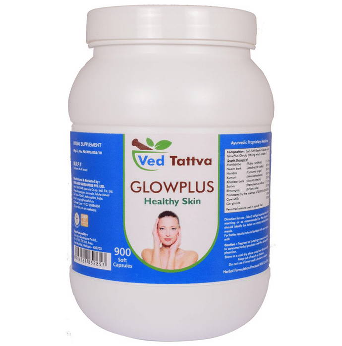 Ved Tattva Glowplus Healthy Skin Capsule Ved Tattva Glowplus Healthy Skin Capsule This capsule supports the restoration of healthy skin by strengthening cells and hydrating the skin to avoid wrinkles. Helping the skin maintain a healthy youthful appearance. Glohills help maintains skin hydration.