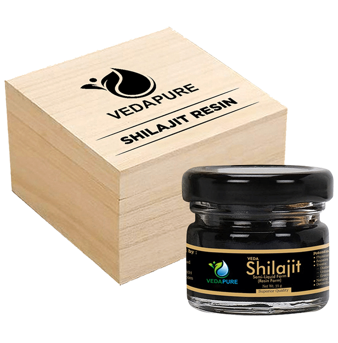 Vedapure Veda Shilajit (Resin Form) Supports General Weakness stimulates the growth process of skin cells at a molecular level. It improves the ability to carry oxygen and iron. These properties of shilajit give people a healthy appearance and youthful glow. Shilajit minerals help to maintain the body's optimum energy metabolism rate which naturally slows down with age. This is achieved partly through balancing electrolyte levels, and by burning off excess fat. | Key Ingredients: Shilajit resin | Key Benefits: Regular use makes you look beautiful, young and healthy Help to provide a healthy body and mind Ayurveda practitioners tout its ability to balance hormone levels that change and cause stress as we age Vedapure shilajit supports metabolism, bones, muscles, kidneys and the immune system It acts as a unique body tonic that revitalizes numerous body functions Shilajit is considered as a dietary supplement and a natural source for all minerals needed by the body | Directions For Use: Take 500 mg or pea size of shilajit twice a day with lukewarm water/ milk. | Safety Information: Read the label carefully before use Keep out of reach of the children Store in a cool dry place