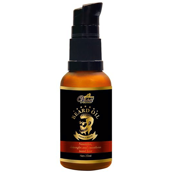Vedobi Beard Oil It is a herbal concoction formulated with jojoba and argan oil that promotes healthy and strong beard hair. It provides deep nourishment and hydration to your beard and prevents itching and dandruff. It also helps soften and moisturise your beard while promoting healthy beard growth. | Key Ingredients: Argan oil Jojoba oil Hemp seed oil Pumpkin oil Grapeseed oil Cedarwood essential oil Patchouli | Key Benefits: It is a herbal concoction that promotes healthy and strong beard hair The beard oil helps in taming the facial hair and keeps your beard smooth and frizz-free It provides deep nourishment and hydration to your beard and prevents itching and dandruff It helps soften and moisturise your beard while promoting healthy beard growth Argan oil provides strength to weak hair and promotes healthy and thicker hair It also helps to increase hair elasticity and restore shine It nourishes your hair follicles and skin from the roots and helps in the growth of the beard | Directions For Use: Apply 4-5 drops of the oil to your beard and gently massage it | Safety Information: Read the product label carefully before use Store in a cool and dry place away from direct sunlight Keep out of reach of children