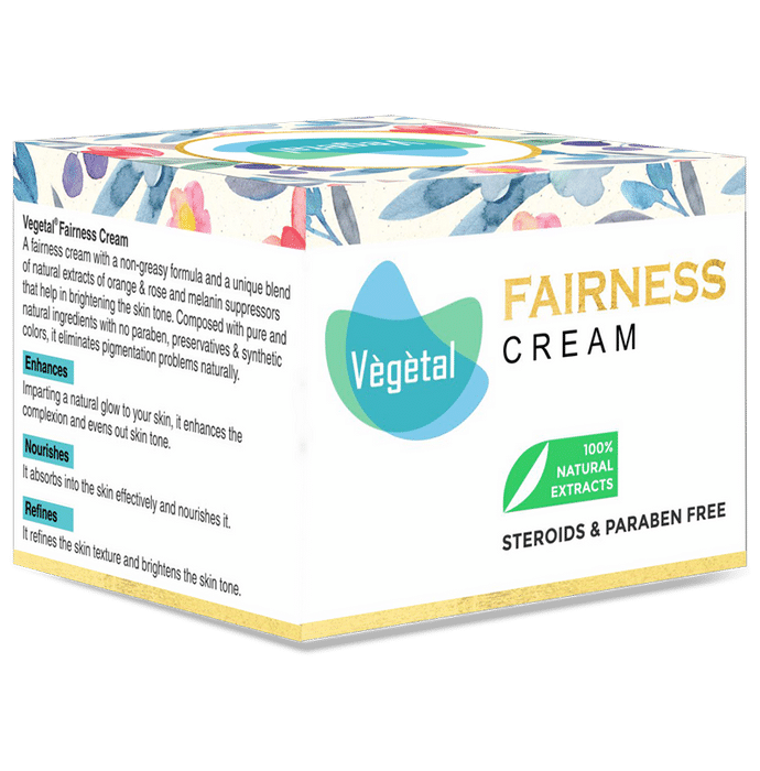 Vegetal Fairness Cream Vegetal Cream is a concoction of ingredients that work together to effectively nourish and moisturise skin. It helps in keeping the skin look hydrated and prevents it from looking dull due to dryness.