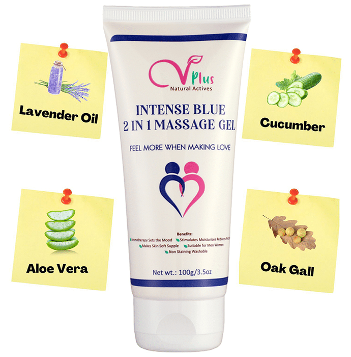 Vigini VPlus Natural Actives Intense Blue 2 in 1 Massage Gel Vigini Intense Blue 2 in 1 Massage Gel helps to moisturize, stimulate and reduce friction. It makes love intense and enjoyable for a longer duration. The skin feels soft and supple and enhances the feeling of pleasure and touch. The lubricating lube moisturizes erogenous area and gives it a romantic soothing effect.