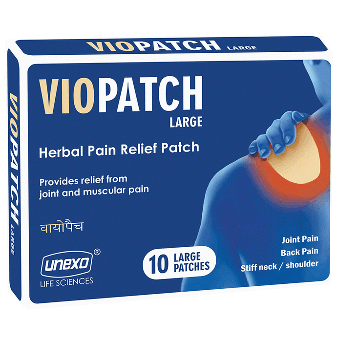 Viopatch Herbal Pain Relief Patch is a herbal transdermal patch that relieves musculoskeletal pain and inflammation on the applied area by sustained release for over 12 hours after application. It assists in relieving discomfort faced due to stiff neck, back, joint and shoulder pain. | Key Ingredients: Gandhpura oil Menthol Camphor Eucalyptus oil Clove oil | Key Benefits: It is ideally suited for patients undergoing musculoskeletal pain and similar conditions It is a 100% herbal and waterproof supplement with zero use of chemicals The patch is applied externally and therefore does not cause any digestive issues This patch requires no reapplication after every few hours and infuses the medicine at a controlled rate for 12 hours It is non-messy and non-greasy, making it easy to apply under clothing | Direction for use: Peel off the protective transparent film on the patch Paste it on the affected area of the body The patch can be removed between 12 – 24 hours of application | Safety Information: Read the user manual carefully before use Keep out of the reach of children Store in a cool, dry place away from direct sunlight