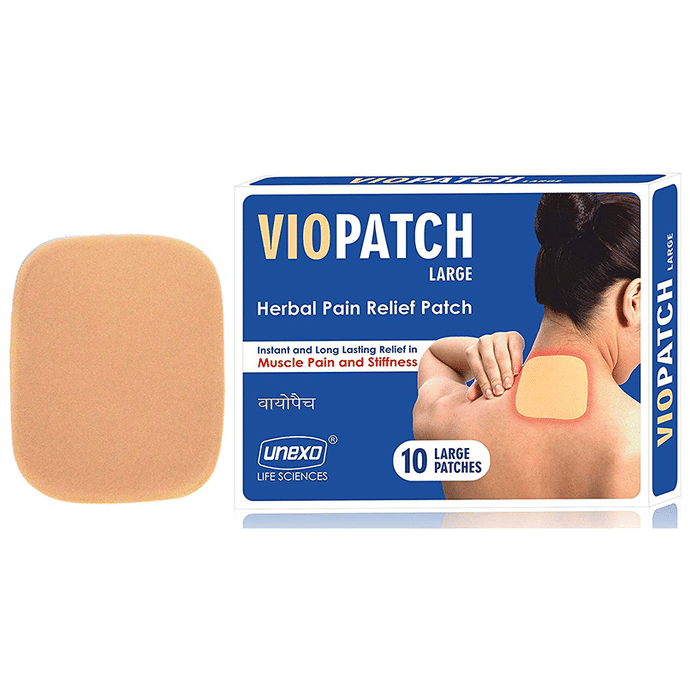 Viopatch Herbal Pain Relief Patch is a herbal transdermal patch that relieves musculoskeletal pain and inflammation on the applied area by sustained release for over 12 hours after application. It assists in relieving discomfort faced due to stiff neck, back, joint and shoulder pain. | Key Ingredients: Gandhpura oil Menthol Camphor Eucalyptus oil Clove oil | Key Benefits: It is ideally suited for patients undergoing musculoskeletal pain and similar conditions It is a 100% herbal and waterproof supplement with zero use of chemicals The patch is applied externally and therefore does not cause any digestive issues This patch requires no reapplication after every few hours and infuses the medicine at a controlled rate for 12 hours It is non-messy and non-greasy, making it easy to apply under clothing | Direction for use: Peel off the protective transparent film on the patch Paste it on the affected area of the body The patch can be removed between 12 – 24 hours of application | Safety Information: Read the user manual carefully before use Keep out of the reach of children Store in a cool, dry place away from direct sunlight
