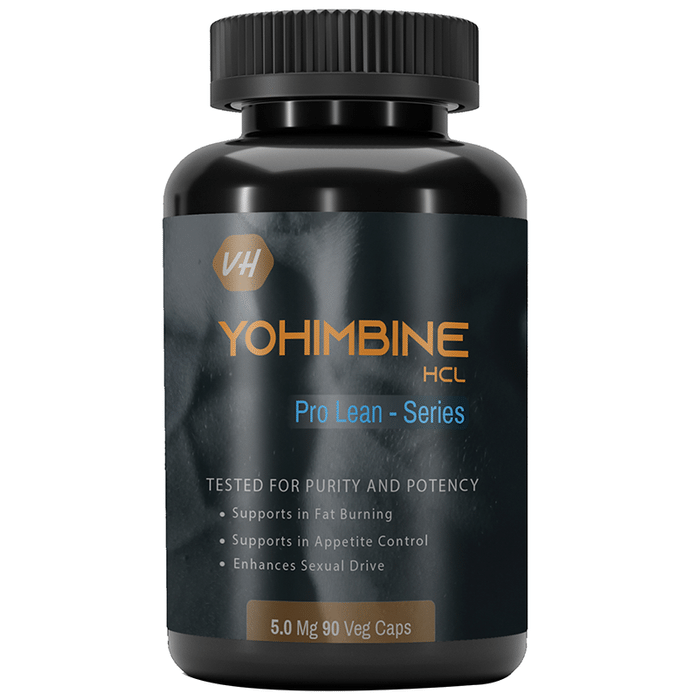 Vitaminhaat Yohimbine Pro-Series HCL 5 mg Capsule It is a health supplement that supports fat burning and appetite control. It improves athletic performance and assists in weight loss. | Key Ingredients: Yohimbine HCL | Key Benefits: It is a health supplement that supports fat burning and appetite control It may improve heart health and enhance general health and wellbeing It improves athletic performance and assists in weight loss It minimises muscle loss and improves lean muscle mass | Directions For Use: Use as directed on the label or as advised by the physician | Safety Information: Read the product label carefully before use Store in a cool and dry place away from direct sunlight Keep out of reach of children Consult a doctor before taking any supplement Do not exceed the recommended dosage Pregnant or nursing mothers, children, and people with medical conditions must consult a physician before taking this supplement