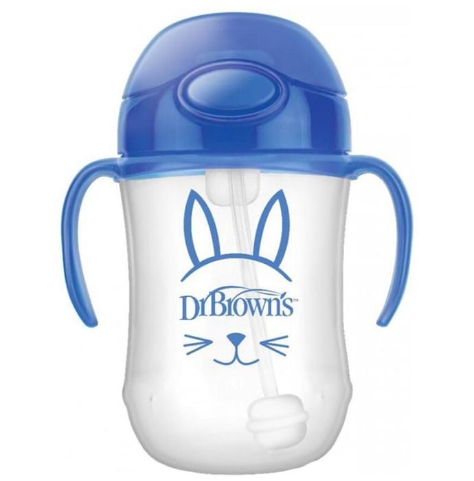 Dr Brown's Natural Flow Baby's First Straw Cup Assorted 6M+ Blue Dr. Brown's Natural Flow Baby's First Straw Cup Assorted 6M+ designed to help baby transition from bottle to cup, this spill-proof straw cup features a soft, flexible straw that allows your baby to drink while holding this cup at any angle. Helping your little one learn to use a straw and designed with handles that are easy for little hands to hold, The Dr Brown's baby's first straw cup is perfect for travel.