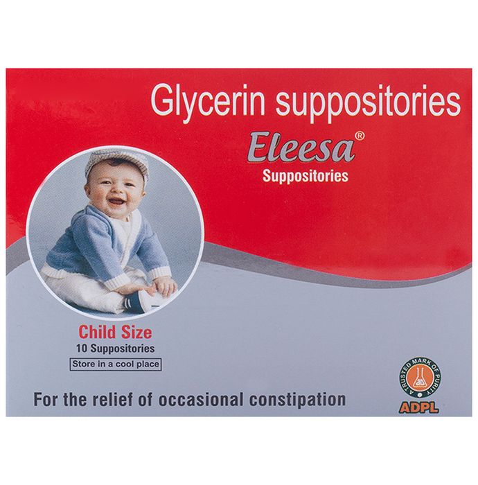 Eleesa Glycerin Suppository Child Size Eleesa Glycerin Suppository is a laxative medicine that is used to treat the condition of constipation. It is used by physicians for cleaning the bowel and rectal passage before surgery or any internal examination. It works by initiating intestinal movement. Glycerin is a hyperosmotic laxative that helps in bowel movement by water into the intestine within 15 to 60 minutes of usage. This product must be used under the guidance of a professional physician.