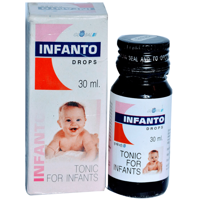 Global Infanto Drop is a non-alcoholic preparation which stimulates appetite, regulates digestion thereby relieves infants from the pains and problems associated with digestion, acidity, painful gums, disturbed sleep, excessive salivation and drooling. | Key Ingredients: Aconite heterophyllum Glycerrhiza Terminalia chebula | Key Benefit: Helps in regulating digestion Relieves pain in gums for infants Treats excessive salivation and drooling | Directions For Use: 5-10 drops thrice a day or as prescribed by the physician | Safety Information: Read the label carefully before use Store in a cool and dry place away from direct sunlight Do not exceed the recommended dosage Take under medical supervision only