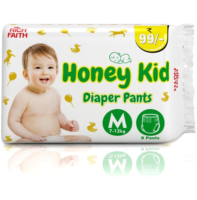 Honey Kid Diaper Pants Medium Honey Kid Diaper Pants is especially constructed for babies. The product is ultra soft and comes with soft elastic band to keep the little one's delicate skin far from diaper rashes. In addition to this, it comprises of advanced double leak protection and odour control system.