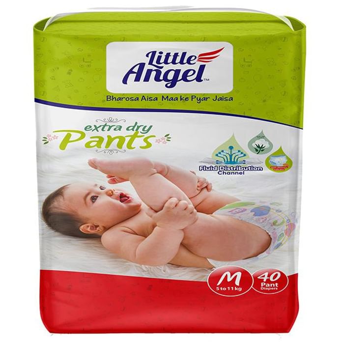 Little Angel Extra Dry Pants Medium Little Angel Extra Dry Pants is especially constructed for babies. The product is ultra soft and comes with soft elastic band to keep the little one's delicate skin far from diaper rashes. In addition to this, it comprises of advanced double leak protection and odour control system.