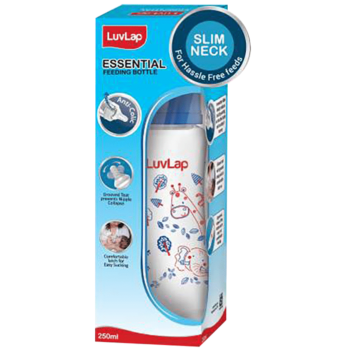 LuvLap Essential Feeding Bottle Slim Neck 3m+ LuvLap Essential Feeding Bottle Slim Neck 0m+ (125ml Each) comes with a slow-flow teat designed to feed the baby with utmost care and slowness. The bottle bears a slim neck to provide the experience of hassle-free feeding.
