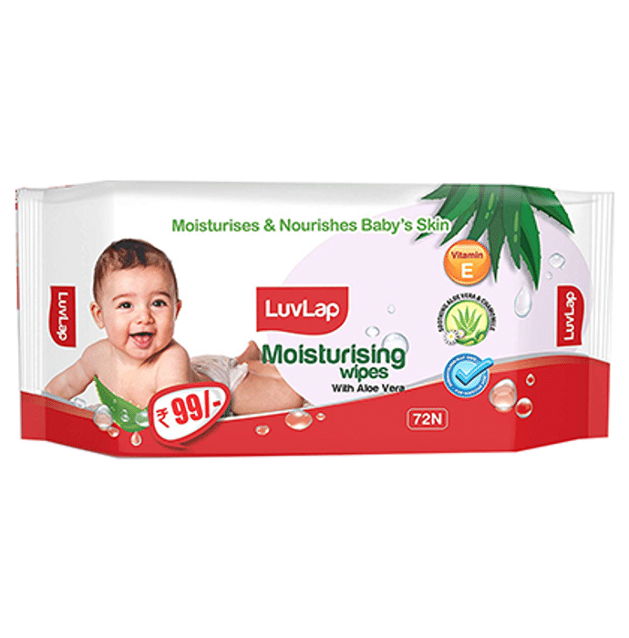 LuvLap Moisturising with Aloe Vera Baby Wipes are intended to protect your child against rashes and allergies. It contains aloe vera and chamomile extract, which soothes and hydrates the baby's sensitive skin. The pH balance protects the skin of the newborn against products that are either too acidic or too alkaline. It contributes to the baby's comfort and security. | Key Ingredients: Aloe vera and chamomile extract | Key Benefits: LuvLap Moisturising with Aloe Vera Baby Wipes are designed to keep your baby safe from rashes and allergies It is infused with aloe vera and chamomile extract that soothes the baby’s sensitive skin and keeps it hydrated Their pH balance safeguards the baby's skin from being exposed to products that are either too acidic or too alkaline | Directions For Use: Use as directed on the label or as advised by the physician. | Safety Information: Read the label carefully before use Store in a cool and dry place away from direct sunlight Keep out of reach of children