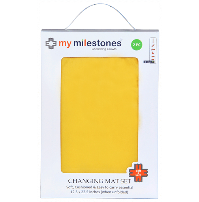 My Milestones Changing Mat Set Yellow My Milestones Changing Mat Set is used as a changeable mat for regular bag or for baby.