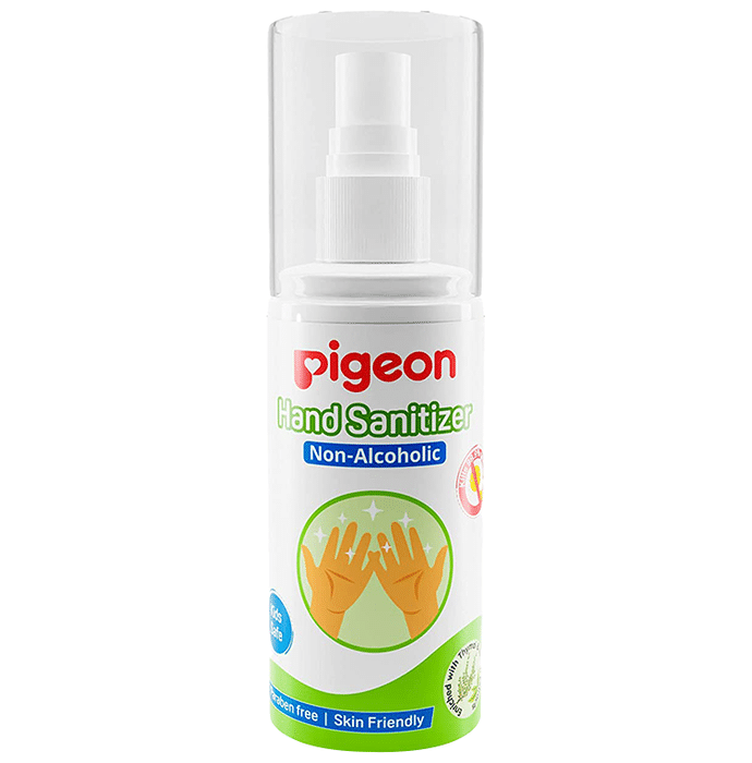 Pigeon Hand Sanitizer helps to provide protection against harmful germs. It is made from neem and thyme extracts that help to prevent the growth of germs. It is non alcoholic. | Key Ingredients: Neem extract Thyme extract Citric acid Gluconate | Key Benefits: It is non-sticky and has a mild fragrance It helps to protect from harmful germs and bacteria It helps to prevent infections It is paraben and alcohol-free and is skin-friendly It helps to maintain hygiene | Directions For Use: Read the label before use Shake well before use Press the nozzle and spray it on dry hands | Safety Information: Store in a cool and dry place Keep out of reach of small children Avoid eye contact For external use only
