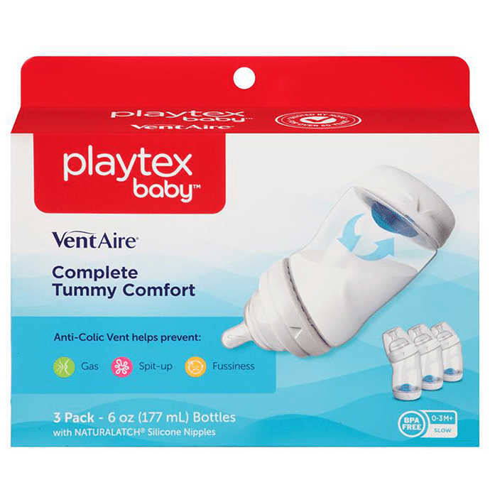 Playtex Baby Ventaire Colors Feeding Bottle is a BPA free feeding bottle that is especially designed to prevent and reduce colic, reflux, gas, etc. It is specific and unique design include an angled design that promotes semi-upright feeding and bottom vent that aids in reducing air ingestion. | Uses: It is used to feed infants and young children, or someone who cannot drink from a cup or breastfeed The bottle is equipped by an angled design that promotes semi-upright and air-free feeding that assists in reducing colic, reflux, gas, burping and spit up | Product Specifications and Features: Specifically designed to reduce colic as it is wide Works with any new Playtex nipple Easy to grasp and hold Stylish and available in different colours Paediatrician recommended brand comfortable and safe Bottom vent assists minimising air ingestion Angled design encourages semi-upright feeding It is BPA free Easy to clean and assemble Comes in slow, medium, and fast flow | Directions for use: Please refer to the manufacturer’s manual for the directions to use this product. | Safety Information: Read the manual carefully before use Use under medical supervision Keep out of reach of children