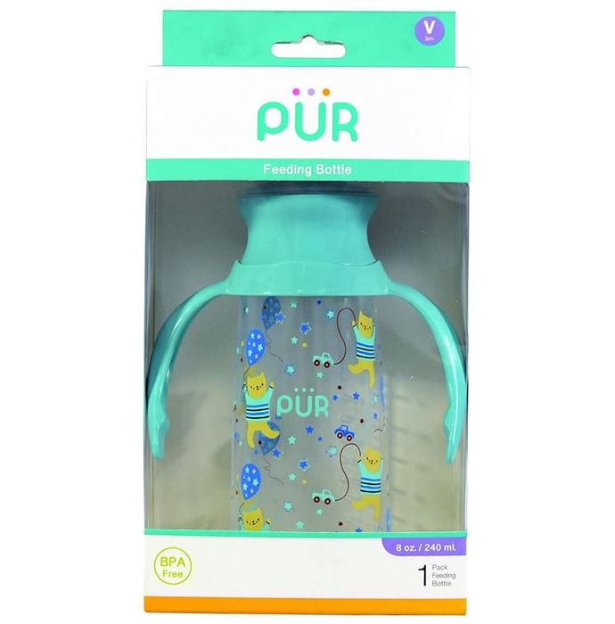 Pur Classy Bottle with Handle & Vari Flow Silicone Nipple Blue