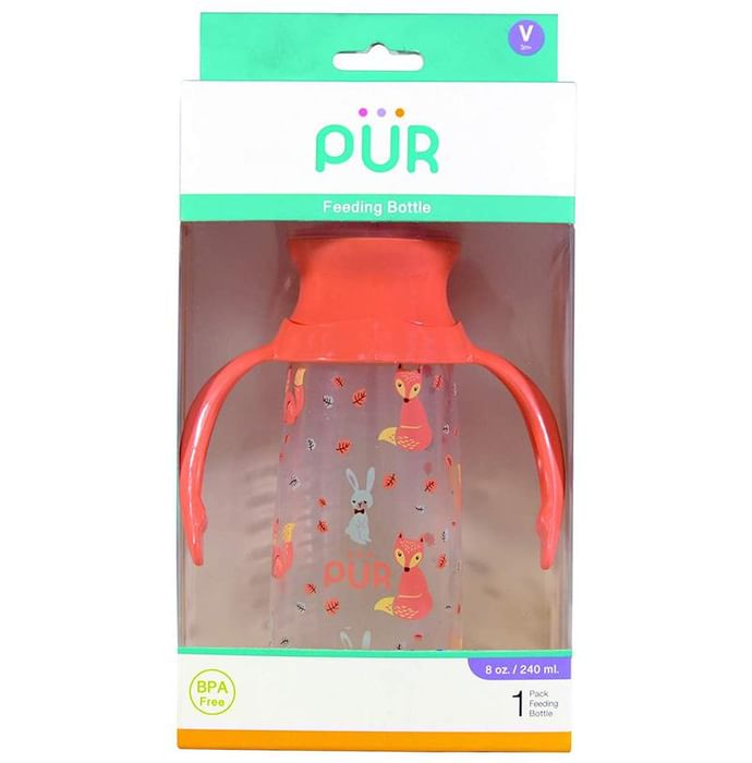 Pur Classy Bottle with Handle & Vari Flow Silicone Nipple Pink