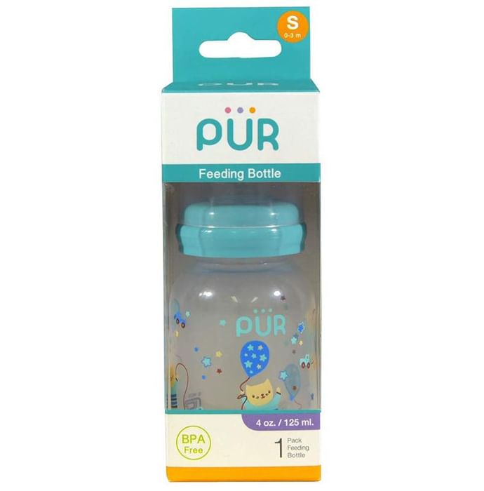 Pur Feeding Bottle for 0 to 3 Months Small Blue Pur Feeding Bottle for 0 to 3 Months can be an effective tool for moms to manage infants with flat, inverted and sore nipples. It offers a durable, comfortable and convenient way to make breastfeeding easier.
