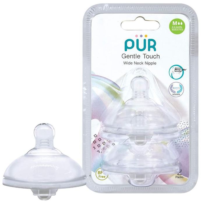 Pur Gentle Touch Wide Neck Nipple Medium Pur Gentle Touch Wide Neck Nipple is designed to make bottle feeding easier to combine offering perfect feeding for your baby and the flexibility you deserve. The natural shaped nipple encourages your baby to latch on similar to the natural action of breast feeding and the nipple flexes stretches and moves just like a mother’s breast.