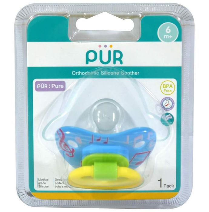 Pur Orthodontic Silicone Soothers 6m+ is soft and gentle on skin. Its breast like base allows the lips to rest comfortably. Ventilation holes allow air circulation. Extra soft and gentle on skin. It promotes the proper development of the mouth by correctly distributing the pressure on the palate and helping baby to position his tongue. | Uses: It is designed to fit perfectly in your cute baby's mouth and help from your baby's palate by improving suction. The teat is made from high quality non perishable, non toxic and tasteless silicone. | Product Specifications and Features: It fits well into the baby's mouth It allows the lips to rest comfortably and prevents saliva from gathering Delicate to touch, the soother is designed so that it does not bother the baby even when they are sleeping | Directions For Use: Use as directed on the label. | Safety Information: Store in a cool and dry place Read the manual carefully Keep out of the reach of children