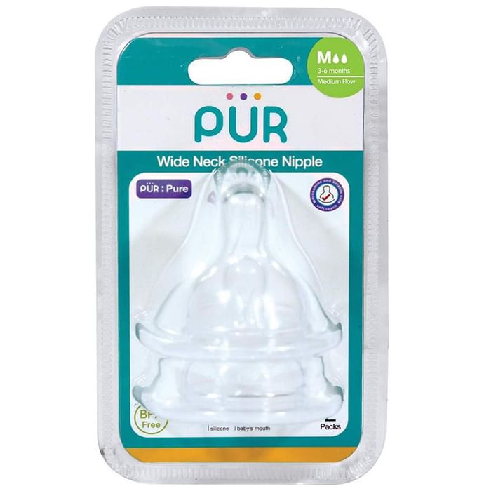Pur Wide Neck Silicone Nipple Medium Pur Wide Neck Silicone Nipple is the perfect breast replacement nipple for a baby. It is extra soft and pleasant and acts as a perfect switch between breast feeding and bottle feeding.
