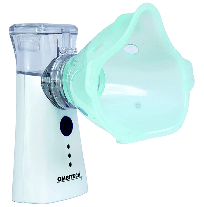 Ambitech NC-12 Portable Mesh Nebulizer Machine is a device that can help administer prescribed medicine, taking it deep into your lungs. The nebulizer can be administered to assuage symptoms like cold, sore throat and cough. It can also aid in clearing the airway of the lungs. It is portable, lightweight, easy to use and clean. | Uses: It can be used to inhale prescribed medication It can aid in clearing the airways | Product Specifications And Features: The nebulizer has a medicine compartment, a clip, a battery cover, mesh, start/stop button and steam indicators It has a small, compact design and is built to be durable The pack contains a mesh nebulizer, an adult mask and a child mask, a USB charging cable and a manual It does not allow any residue of the medicine to linger between the mouth and the throat | Directions For Use: Read the directions provided in the manual before use | Safety Information: Keep out of reach of the children Store in a clean, dry place One person use only