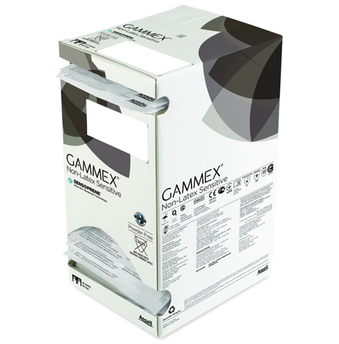 Ansell Gammex Non-Latex Sensitive Powder Free Surgical Glove 8 Ansell Gammex Non-Latex Sensitive Powder Free Surgical Glove 6.5 is used to assist avoid cross-contamination between caregivers and patients during medical exams and procedures. It has a micro rough finish and is intended for one-time usage only. It is non-latex and chemical accelerator-free, reducing the danger of latex Type I allergies and skin sensitivities while also reducing chemical Type IV allergies and skin sensitivities.