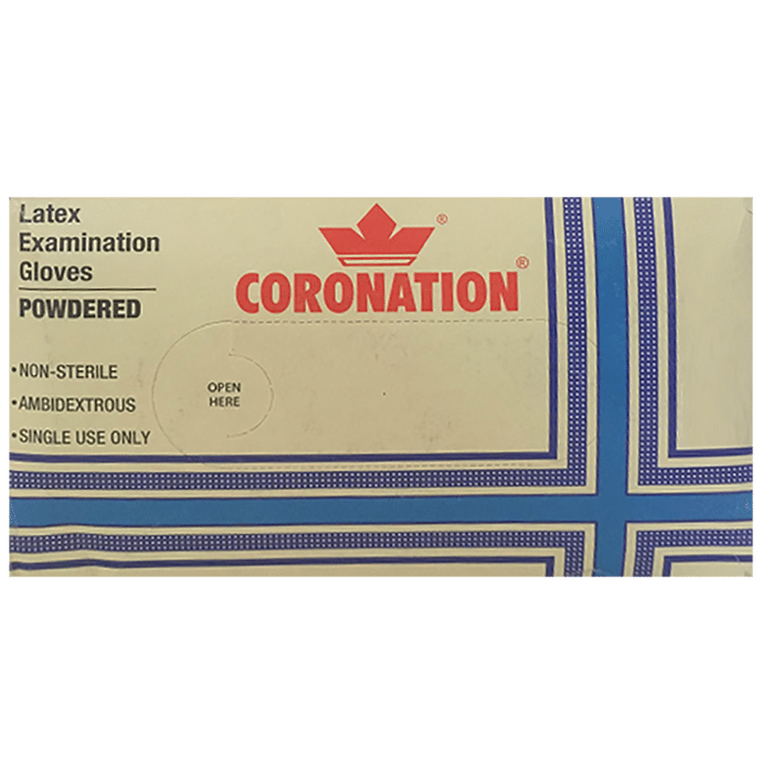Coronation Latex Examination Glove Large Coronation Latex Examination Gloves are powdered, Non-Sterile, and Ambidextrous. Good Quality Latex Gloves provide an excellent biological barrier. They are not intended for use as a chemical barrier. Safe use of these gloves by or on latex sensitized individuals has not been established.