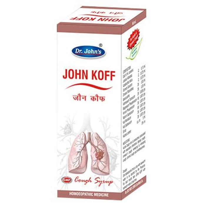 Dr. Johns John Koff Syrup Dr. Johns John Koff Syrup is a homoeopathic remedy, primarily used for the treatment of respiratory disorders. It is beneficial for people suffering from chronic cases of dry cough and provides relief from hoarseness and chest pains associated with it.