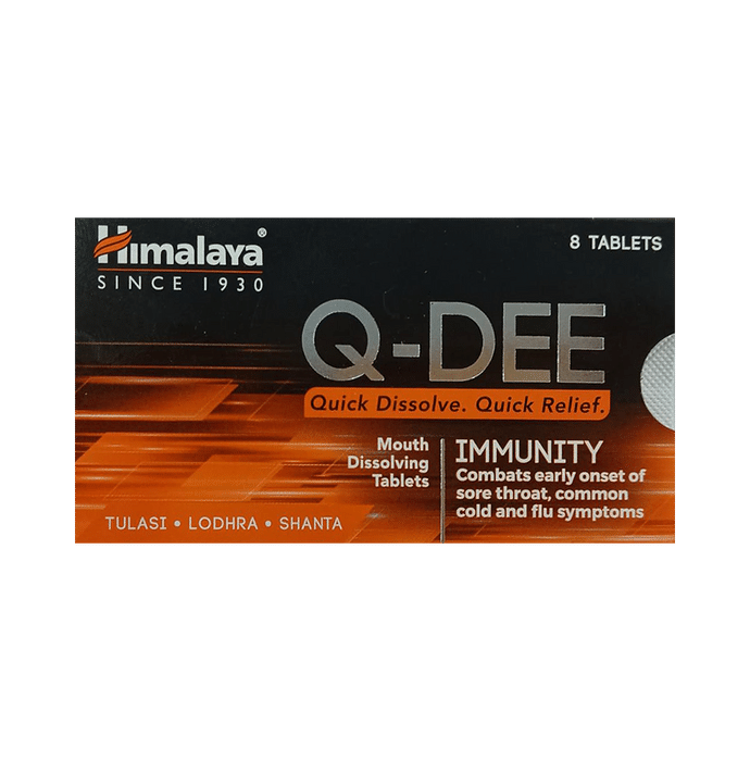 Himalaya Q-Dee Tulasi+Lodhra+Shanta Tablet MD Himalaya Q-Dee Tulasi+Lodhra+Shanta Tablet MD are an easy-to-consume, convenient, on-the-go option for upper respiratory tract infections caused by environmental factors. Through its anti-inflammatory, immunomodulatory, antitussive, expectorant and antimicrobial actions, Q-Dee Immunity relieves the early onset of cough, cold and flu symptoms and also helps shorten the duration of the severity of the symptoms.