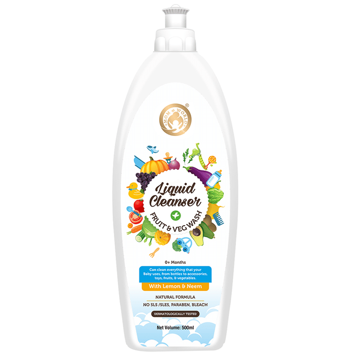 Mom & World Liquid Cleanser Fruit & Veg Wash with Lemon & Neem Mom & World Liquid Cleanser Fruit & Veg Wash with Lemon & Neem is a liquid cleansing formula that can clean everything from bottles to accessories, toys, fruits and vegetables.