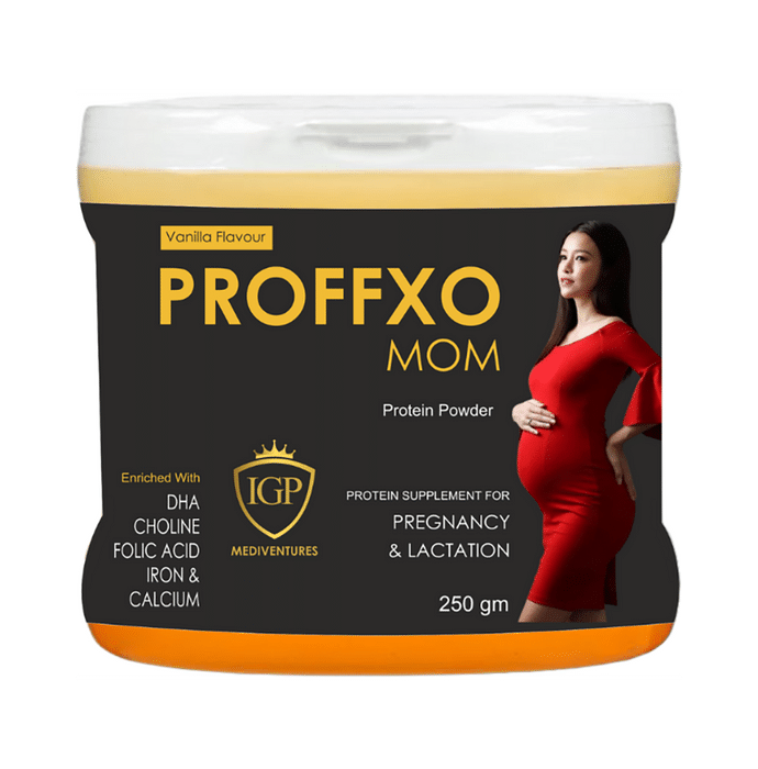 Proffxo Mom Protein Powder Vanilla Proffxo Mom Protein Powder Vanilla is a protein supplement that may support the health and well-being of pregnant women. It can help in the proper functioning of the body. It can also help in proper lactation.