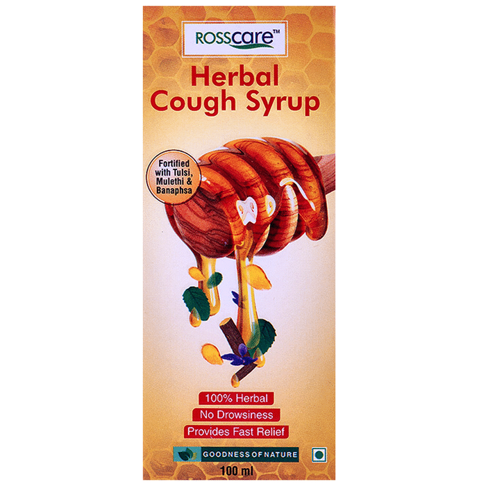 Rosscare Herbal Cough Syrup Rosscare Herbal Cough Syrup is an Ayurvedic 100% herbal cough syrup with the all-important Sunthi Honey, Tulsi, Mulethi, and Banaphsa. This herbal cough remedy provides relief in acute coughs and throat irritation without causing drowsiness. It provides fast relief, is non-addictive, has no alcohol, no yeast, no gluten, and no GMO.