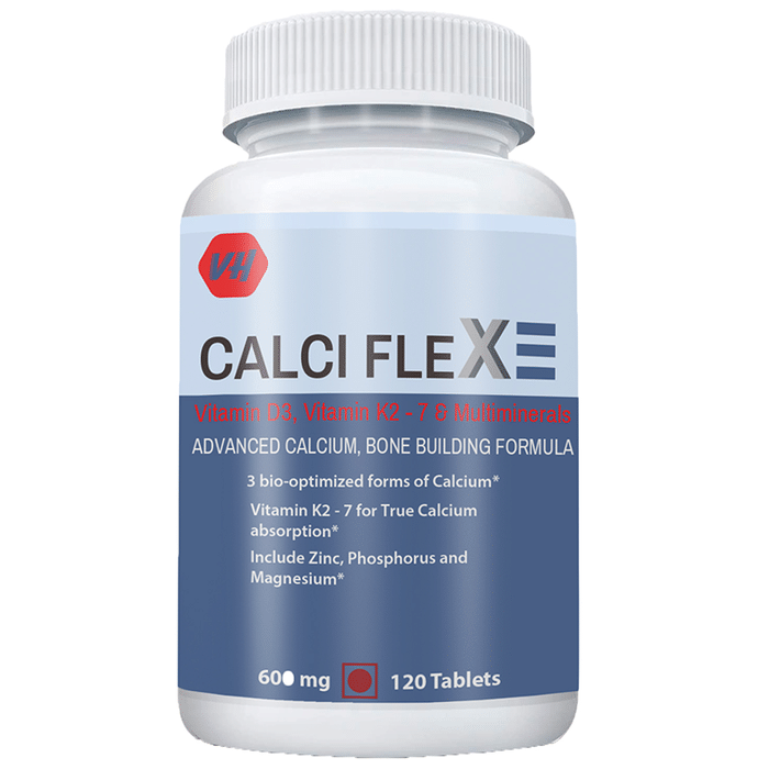 Vitaminhaat Calciflex Capsule contains calcium citrate malate ( CCM ), most bioavailable calcium source, and 100% RDA of vitamin D3 which together may improve bone density and strength. | Key Ingredients: Calcium CCM Vitamin D3 Magnesium Zinc Vitamin k2 - 7 | Key Benefits: Vitamin K2-MK7 in Vitaminhaat CalcifleX is essential for the absorption of calcium ensuring that calcium reaches the bone and not arteries Multi-source calcium tablet formula with stabilized Vitamin K27 (MK-7) Vitamin K27 (MK-7) helps in strengthening of bones health and increasing bone density | Directions For Use: Use as directed. | Safety Information: Read the label carefully before use Keep out of reach of the children Store in a cool dry place