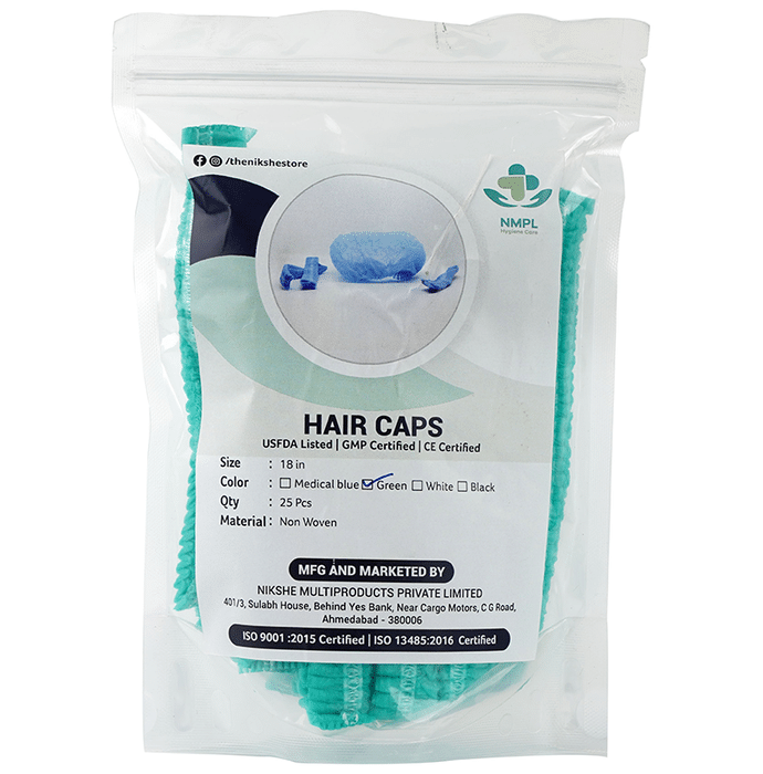 NMPL Hair Cap is composed of non-woven fabric that can withstand even the tiniest particles and it is wrapped around the head with an elastic grasp. They are comfortable to wear, lightweight, and do not cause discomfort even when worn for a long period. | Uses: It is used as caps by surgeons to prevent the falling of any dust particles during surgery. | Product Specification and Features: These caps are lightweight and provide complete coverage of the head and hair These caps can be used by doctors and nurses during surgery It has good water resistance and air permeability It provides relief and dryness. It also possesses antibacterial and antifungal properties | Directions For Use: Use as directed on the label. | Safety Information: Read the label carefully before use Store in a cool and dry place away from direct sunlight Keep out of reach of children