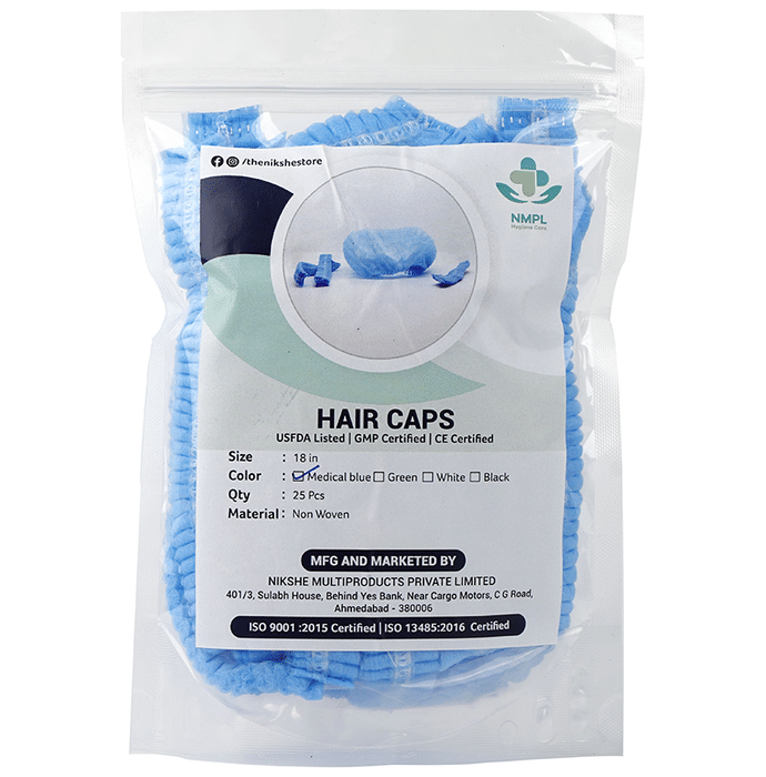 NMPL Hair Cap is composed of non-woven fabric that can withstand even the tiniest particles and it is wrapped around the head with an elastic grasp. They are comfortable to wear, lightweight, and do not cause discomfort even when worn for a long period. | Uses: It is used as caps by surgeons to prevent the falling of any dust particles during surgery. | Product Specification and Features: These caps are lightweight and provide complete coverage of the head and hair These caps can be used by doctors and nurses during surgery It has good water resistance and air permeability It provides relief and dryness. It also possesses antibacterial and antifungal properties | Directions For Use: Use as directed on the label. | Safety Information: Read the label carefully before use Store in a cool and dry place away from direct sunlight Keep out of reach of children