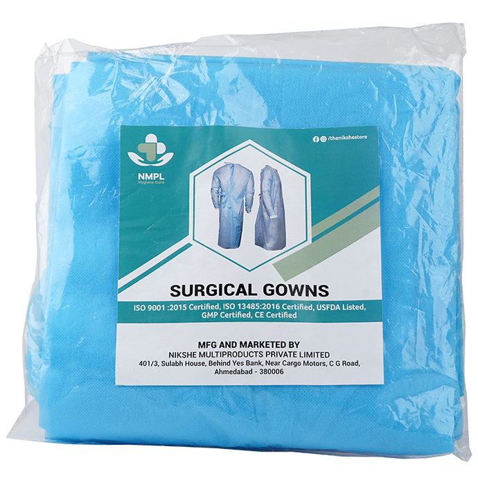NMPL Surgical Gown is a robust, comfortable, and lightweight surgical gown that provides exceptional protection to physicians and healthcare professionals. It is a cost-effective alternative for hospitals and it is available in a universal size. It is available in blue and yellow colours. | Uses: Protects surgeons and healthcare workers against cross-infection, dust, germs etc. | Product Specification and Features: It is a durable, portable and eco-friendly gown These gowns are made with breathable material with velcro-fastening It is manufactured according to strict safety standards It contains non-woven fabric with stretchable sleeve ends | Directions For Use: Use as directed on the label. | Safety Information: Read the label carefully before use Store in a cool and dry place away from direct sunlight Keep out of reach of children