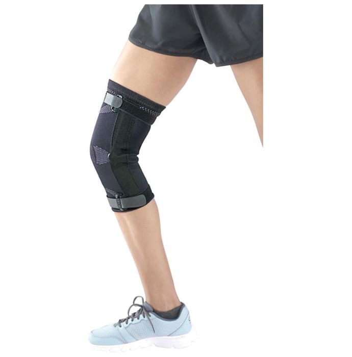 Vissco Core 0706 Hinged Knee Cap is constructed to provide compression and stability to the knee. The product promotes blood flow and reduces knee joint pain. It can also facilitate support in pain associated with osteoarthritis, cartilage damage, and overworked knee joint. | Uses: It is primarily used to give support and stability to the knee. | Product Specification and Features: Embodies hinges with unilateral locking for a comfortable support It has soft knitting which reduces pressure on the patella The material is skin friendly, anti-fungal and anti-bacterial in nature Helps to improve blood flow to the soft tissue areas around the joint Useful in osteoarthritis, cartilage damage, and overworked knee joint Contains straps above and below the knee for optimal support It is light weight, permit air flow, and ensures two-way stretch | Note: | Warranty: 12 months | Customer Care Id: [email protected] | Customer Care Number: 022-43330376 (Monday to Saturday (10 am to 6 pm)) | Directions For Use: Use as per requirement or as directed by the physician. | Safety Information: Read the label carefully before use Store in a cool dry place away from direct sunlight Keep out of reach of the children Avoid physical damage