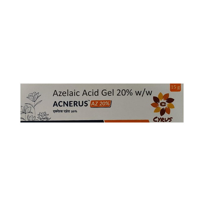 Acnerus AZ 20% Gel is used in the treatment of acne (pimples). It effectively relieves symptoms such as lumps, redness, and swelling associated with different forms of acne. It works by killing acne-causing bacteria. Acnerus AZ 20% Gel is for external use only. You should always use it exactly as prescribed. Both the affected area and your hands should be clean and dry before application. Use this medicine regularly to get the most benefit from it. Do not use more than you need as it will not clear your condition faster and some side effects may be increased. If your condition goes on for longer than four weeks or gets worse at any time, let your doctor know. You can help this medication work better by keeping the affected areas clean. Acnerus AZ 20% Gel has a few potential side effects but not everyone will get them. These include application site reactions like burning, irritation, itching, and redness. Let your doctor know if you’re bothered by these or they do not go away. Avoid getting the medicine in your eye. In case of accidental contact, rinse thoroughly with water. If you are pregnant, breastfeeding, or plan to become pregnant, you should consult your doctor before using this medicine.