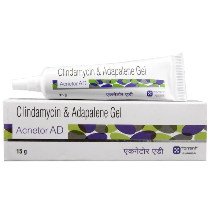 Acnetor AD Gel is a combination of two medicines that effectively treats acne. It mindimizes oil production and helps to reduce inflammation. It also kills acne-causing microorganisms and prevents infection. This helps to prevent pdimples, blackheads, and whiteheads on the skin. Acnetor AD Gel is only meant for external use and should be used as advised by your doctor. You should normally wash and dry the affected area before applying a thin layer of the medicine. It should not be applied to broken or damaged skin. Avoid any contact with your eyes, nose, or mouth. Rinse it off with water if you accidentally get it in these areas. It may take several weeks for your symptoms to dimprove, but you should keep using this medicine regularly. Do not stop using it as soon as your acne starts to get better. Ask your doctor when you should stop treatment. Side effects like minor itching, burning, or redness of the skin and oily skin may be seen in some people. These are usually temporary and resolve on their own. Consult your doctor if they bother you or do not go away. Inform your doctor if you have any problems with your bowels (intestines), or if you are using any other medicines to treat skin conditions. Consult your doctor about using this medicine if you are pregnant or breastfeeding.