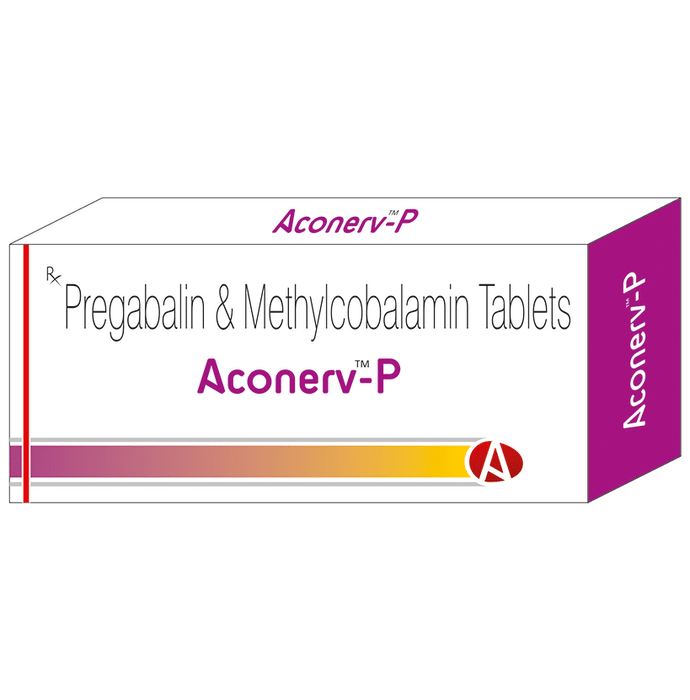 Aconerv-P Tablet SR is a prescription medicine used for the treatment of neuropathic pain. It decreases pain by modulating calcium channel activity of the nerve cells. This medicine also protects nerve fibers and heal damaged nerve cells. Aconerv-P Tablet SR is taken by mouth with or without food, preferably at bedtime. It is advised to take it at the same time each day as this helps to maintain a consistent level of medicine in the body. Take this medicine in the dose and duration advised by your doctor as this is a habit-forming medicine. If you miss a dose of this medicine, take it as soon as you remember. Finish the full course of treatment even if you feel better. It is important that this medication is not stopped suddenly without talking to the doctor. Some common side effects of this medicine include dizziness and sleepiness, so do not drive or do anything that requires mental focus until you know how this medicine affects you. The side effects are mild in nature and get improve with time. This medicine may cause weight gain and to control it, you should exercise regularly and take a balanced diet. It is important to inform your doctor if you develop any unusual changes in mood or behavior, new or worsening depression, or suicidal thoughts. Your doctor should also know about all other medicines you are taking as many of these may make this medicine less effective or change the way it works. Inform your doctor if you are pregnant, planning pregnancy, or breastfeeding.